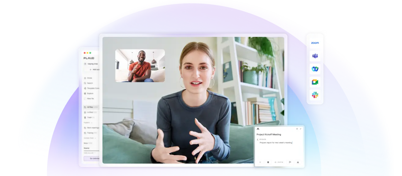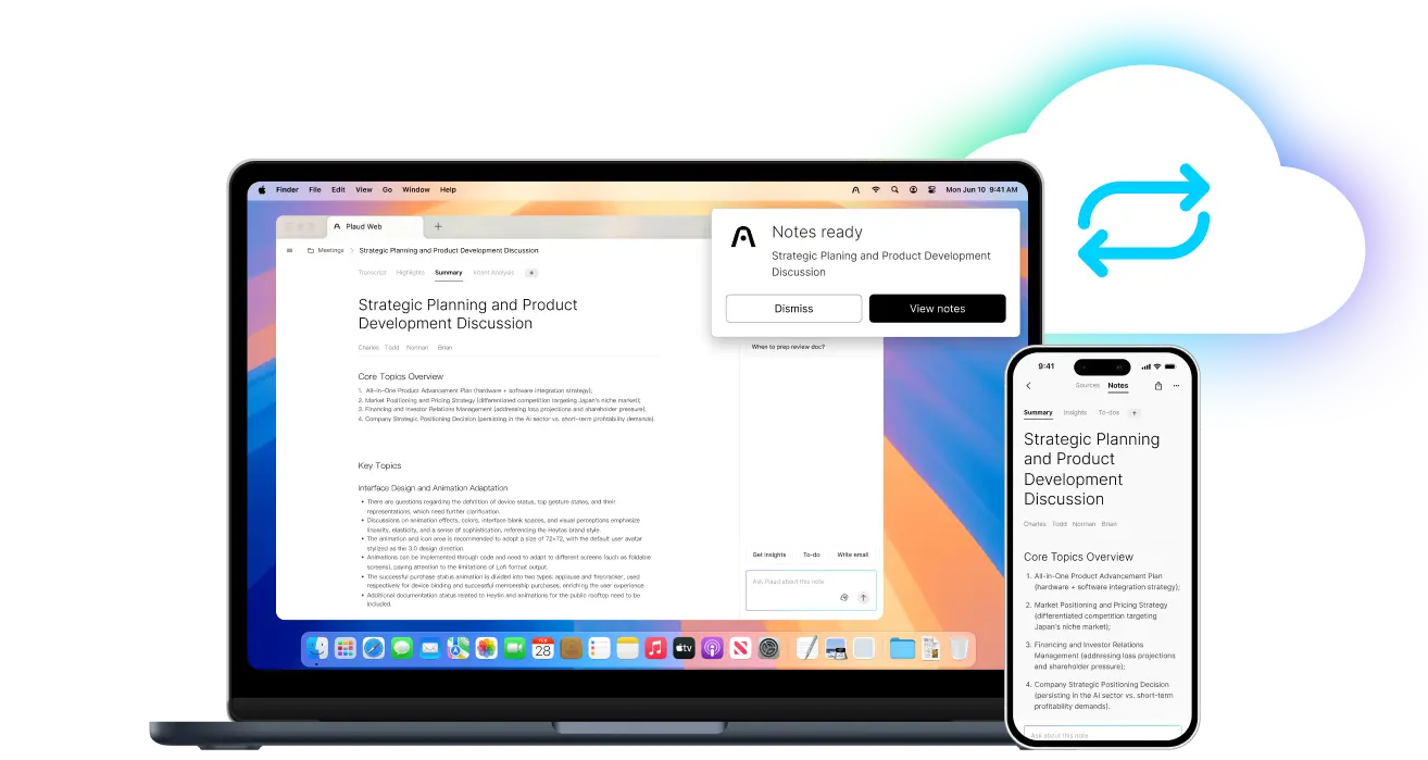 Bygg en bro mellan online- och fysiska möten. Alla Plaud-enheter ger tillgång till Plaud Desktop, så att du kan spela in onlinemöten, telefonsamtal och samtal på plats samt hålla alla dina anteckningar organiserade i Plaud App och Plaud Web.