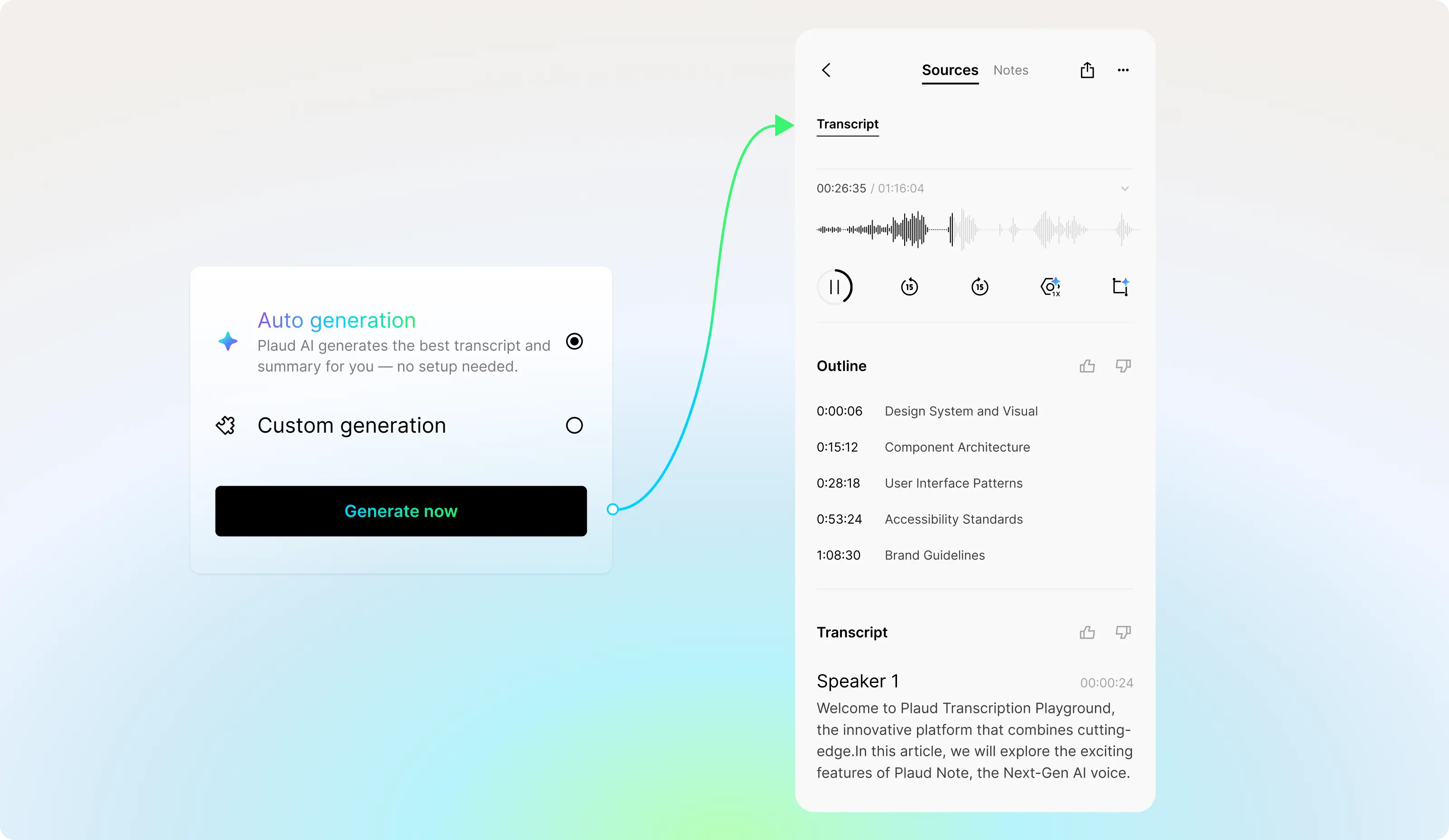 Med Auto Generation skapar Plaud automatiskt korrekta transkriptioner med smart identifiering av språk och talare, helt sömlöst.