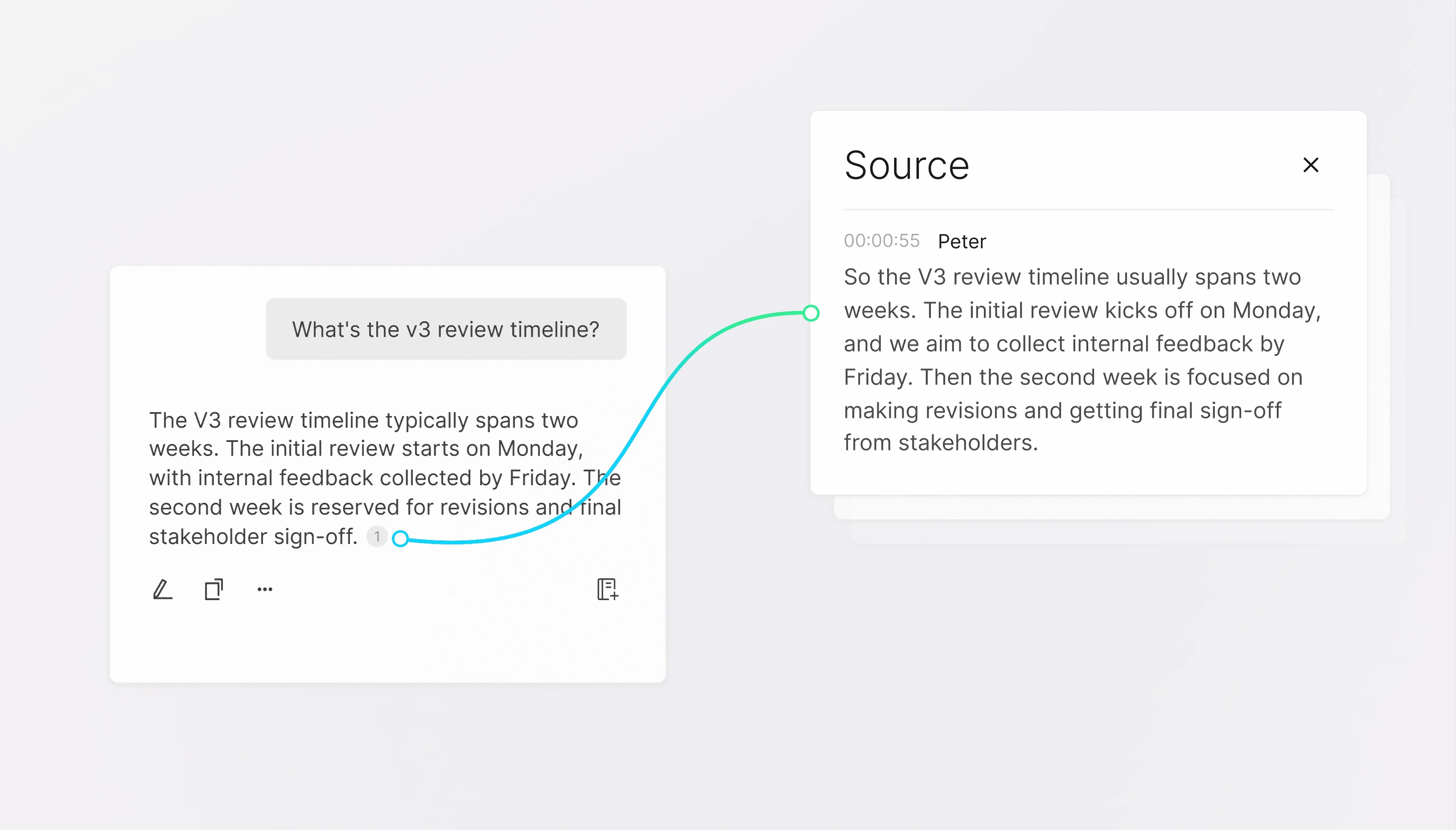 Varje svar bygger på källor och kan spåras tillbaka till ditt originala ljudmaterial, så Ask Plaud är alltid pålitligt, korrekt och fritt från AI-hallucinationer.