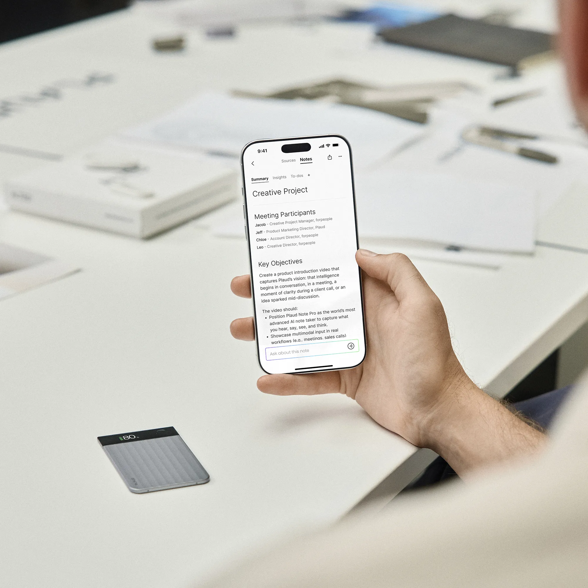 - Fungerar med appen PLAUD på iOS och Android; åtkomst via app, webb och desktop.