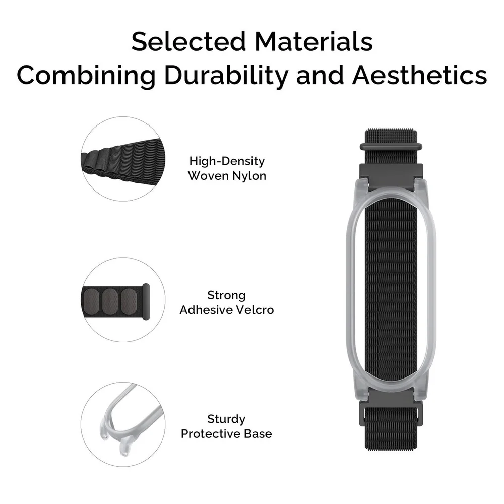 Armbandet är tillverkat av nylonfibrer av högsta kvalitet, vilket ger andningsförmåga och komfort.
